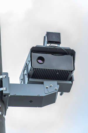 Traffic violation camera with radar for traffic speed control. Close up