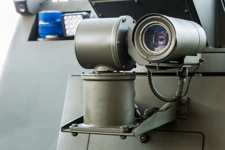 Bucharest, Romania - September 18, 2020: Various professional surveillance cameras (infrared, thermal) mounted on a Romanian Border Police vehicle.