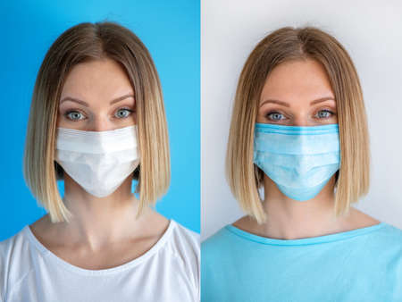 Portrait of woman wearing medical mask. Protection from catching disease. Pandemic of coronavirus concept.