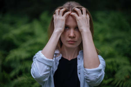 portrait of psychopathic girl with mental paranoid disorders