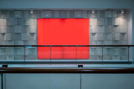 Simple pastel colors painting hanging in white room interior with checkerboard linoleum floor. Empty space for your product placement
