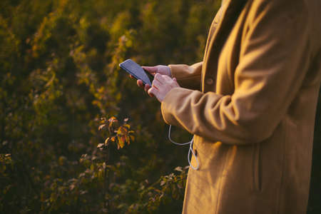 phone in hand outdoors street walk fashion