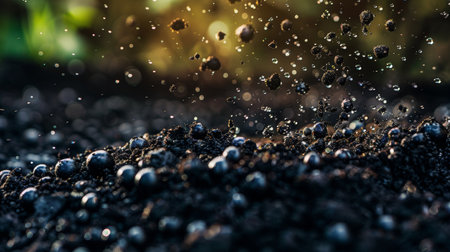 Abstract macro shot of soil with water droplets, capturing the intricate details and textures of nature.