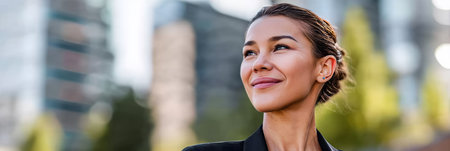 Young Asian Business Professional Aspiring for Success in a Dynamic Urban Environment Outdoors