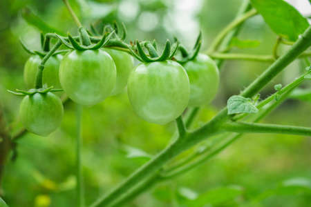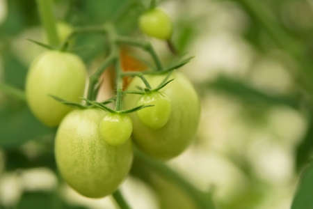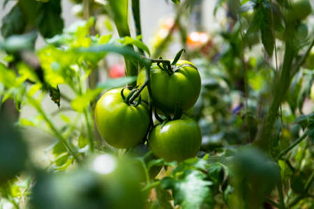 Green tomatoes in a green house