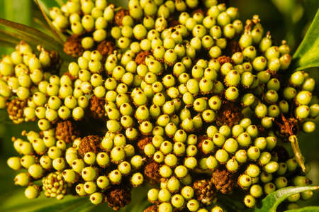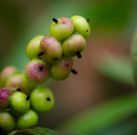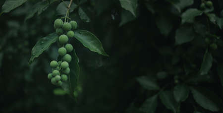 Macro closeup shot a cluster of wild fruit on the tree in the rainforest. selective focus shot