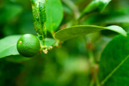 Green limes on the lime tree (Citrus aurantifolia), they are closely related to lemon. It has a sour taste and is an excellent source of vitamin C.