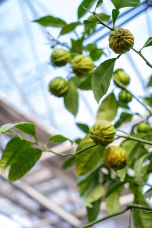 Closeup of the growing lemon tree