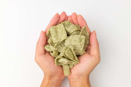 A seaweed snack. Dessert with rice and seaweed. Snack with crunchy texture