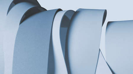 3d render, abstract background with blue folded ribbon, paper scroll macro