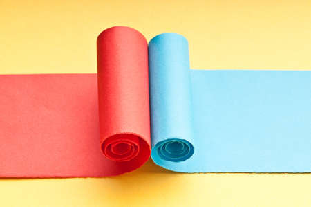 A rolled white paper rests on a bright yellow background, perfect for creative projects, design work, or artistic displays. The contrast enhances visual appeal.