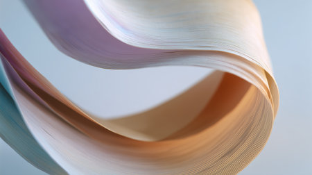 A captivating close-up view of a cream colored paper roll elegantly spiraling, enhanced by soft natural light creating a serene and artistic atmosphere.