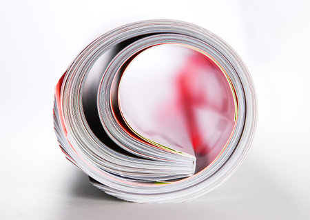 selective focus of the stacking magazine place on white background. Colorful abstract background