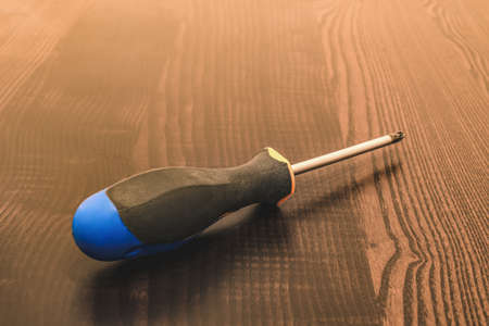 screwdriver closeup on a wooden table. industrial tool for housework