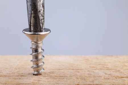 Screwing a screw into wood with a screwdriver