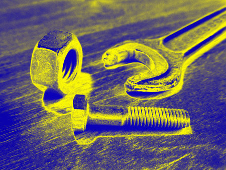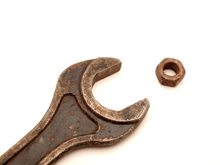 Old wrench and old bolt nut
