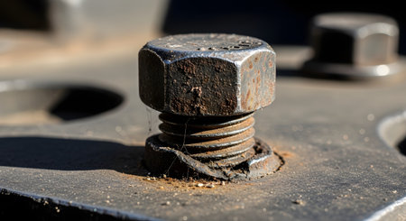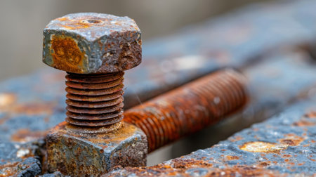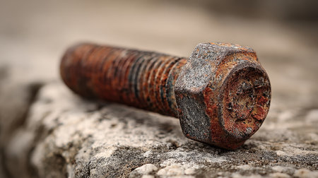 A close-up image of a rusty bolt showcasing detailed textures and wear on a rough surface, ideal for industrial and mechanical design concepts.