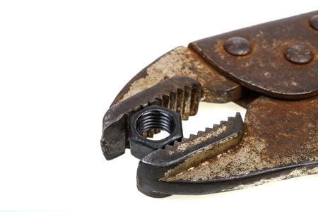 close-up old lock pliers and nut