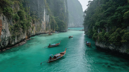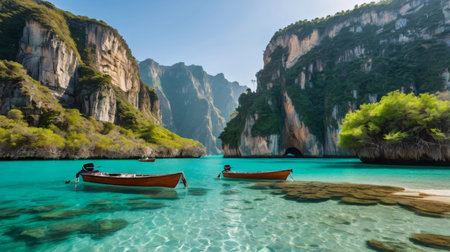 Tranquil Thai islands surrounded by crystal-clear waters and towering mountains. An idyllic travel destination for those in search of natural beauty and serenity.
