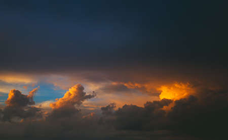 Sunset beautiful clouds on the dramatic stormy sky background before the rain. Dark stormy sky texture