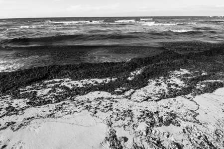 Sea in a thick fog. Atmospheric monochrome landscape. Nature, environmental conservation, ecology, winter, climate change, global warming