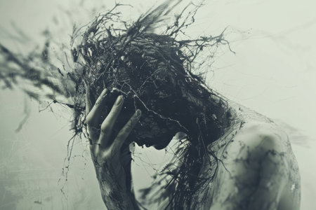 A person fighting through various mental health conditions expressing deep emotions. Concept Mental health struggles, Emotional expression, Inner turmoil, Vulnerability, Personal growth