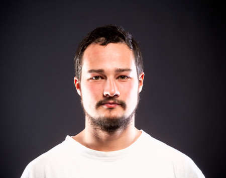 gloomy portrait of a guy in a white t-shirt with an evil face
