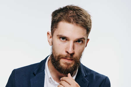 Businessman thinks businessman with a beard, businessman on a light background portrait.