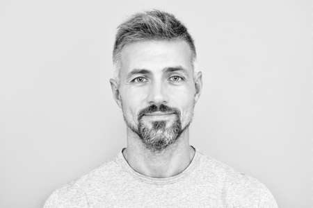 mature handsome man portrait with grizzled beard hair, male beauty