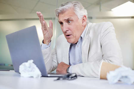Whats going on. Shot of a mature businessman looking overwhelmed while using a laptop in an office at work.
