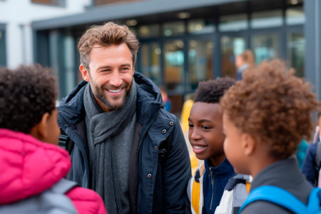 Positivity And Engagement: Male Teacher Radiates Joy In Elementary School Classroom