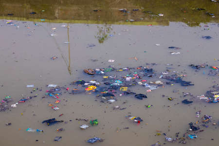 Plastic waste floating in the water. Recycling concept.