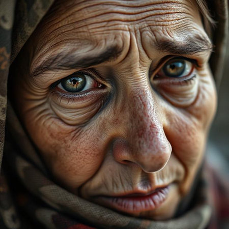 A warm and intimate portrait of an elderly woman with expressive eyes, showcasing the depth of her experiences and emotions