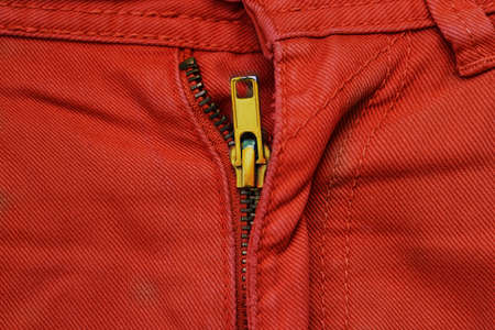 Close up view of zipper on pant. Clothes accessory.