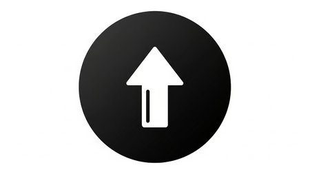 A white upward-pointing arrow is centered within a black circle on a plain white background.
