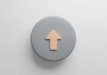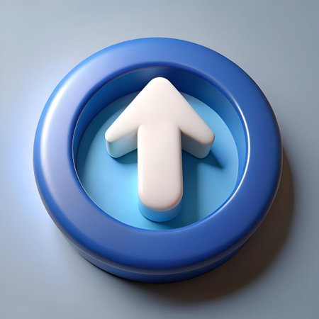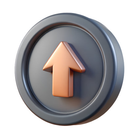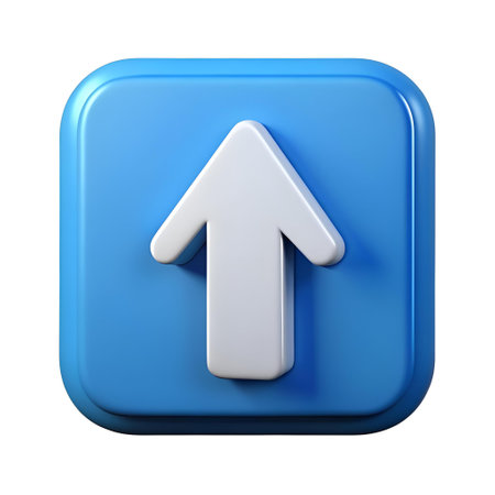3D rendered blue button with a white upward arrow. representing progress. growth. and positive direction. Perfect for user interfaces. website design. and presentations.