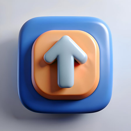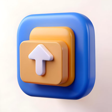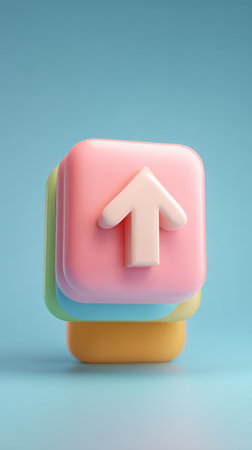 A vibrant 3D rendering of an upload icon atop layered blocks, perfect for digital content.