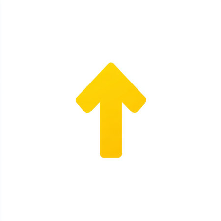 A vibrant yellow arrow pointing upward against a pristine white background, perfect for representing navigation, guidance, or directional signage in various media.