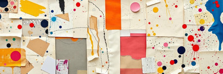 Collage of torn paper with colorful spots and stains. Abstract background
