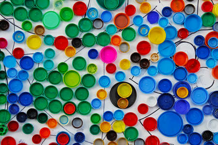Colorful recycled plastic bottle caps as background or texture