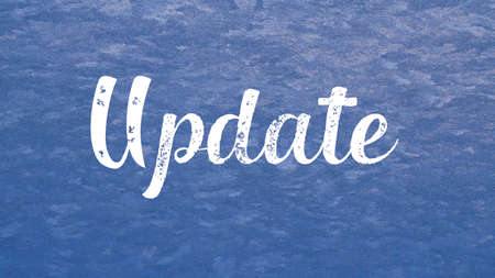 A torn paper label reading UPDATE placed on a dark textured surface. Ideal for illustrating announcements notifications or reminder concepts in various media.
