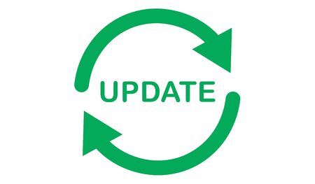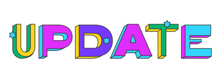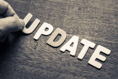 Business and finance concept. Text UPDATE on colorful wooden board on white background.