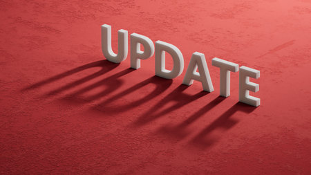 shadow of 3d characters with word update. close up of shadow of 3d characters, Business Concept. 3D rendering on red background.