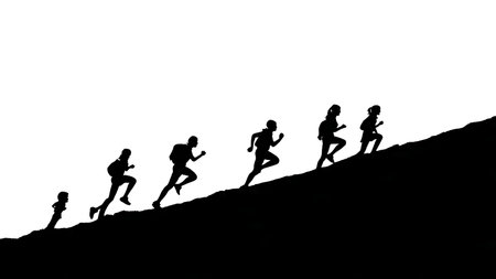 Black Solid Students Hill Run Silhouettes Set of Six on White Background isolated on plain white background.