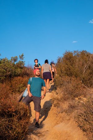 LOS ANGELES, USA - JUNE 28, 2016: View of people hiking a dirty track at Griffith Park.
