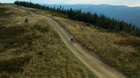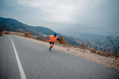 Running and hiking in the mountains. Speed hiking
