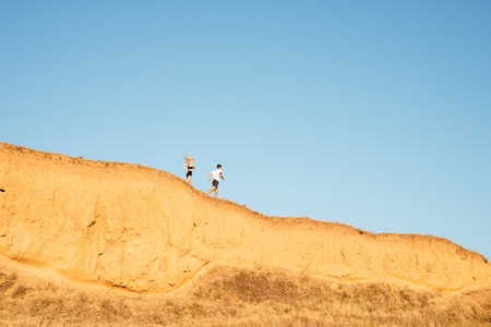 Menschen besteigen einen Huegel