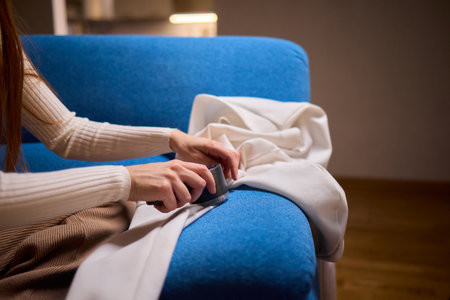 Effectively Removing Lint from a Beautiful Sweater Using a Handy and Useful Lint Roller Tool