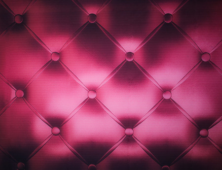 Shiny electric pink artificial textured leather stitched with thread. Close-up of sofa surface. View from directly above. Highly detailed background with copy space divided on few square parts.