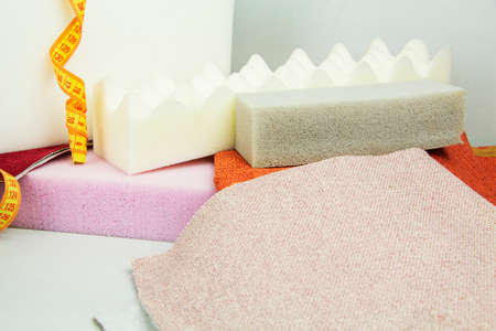 a piece of foam rubber of different sizes and colors, production of upholstered furniture